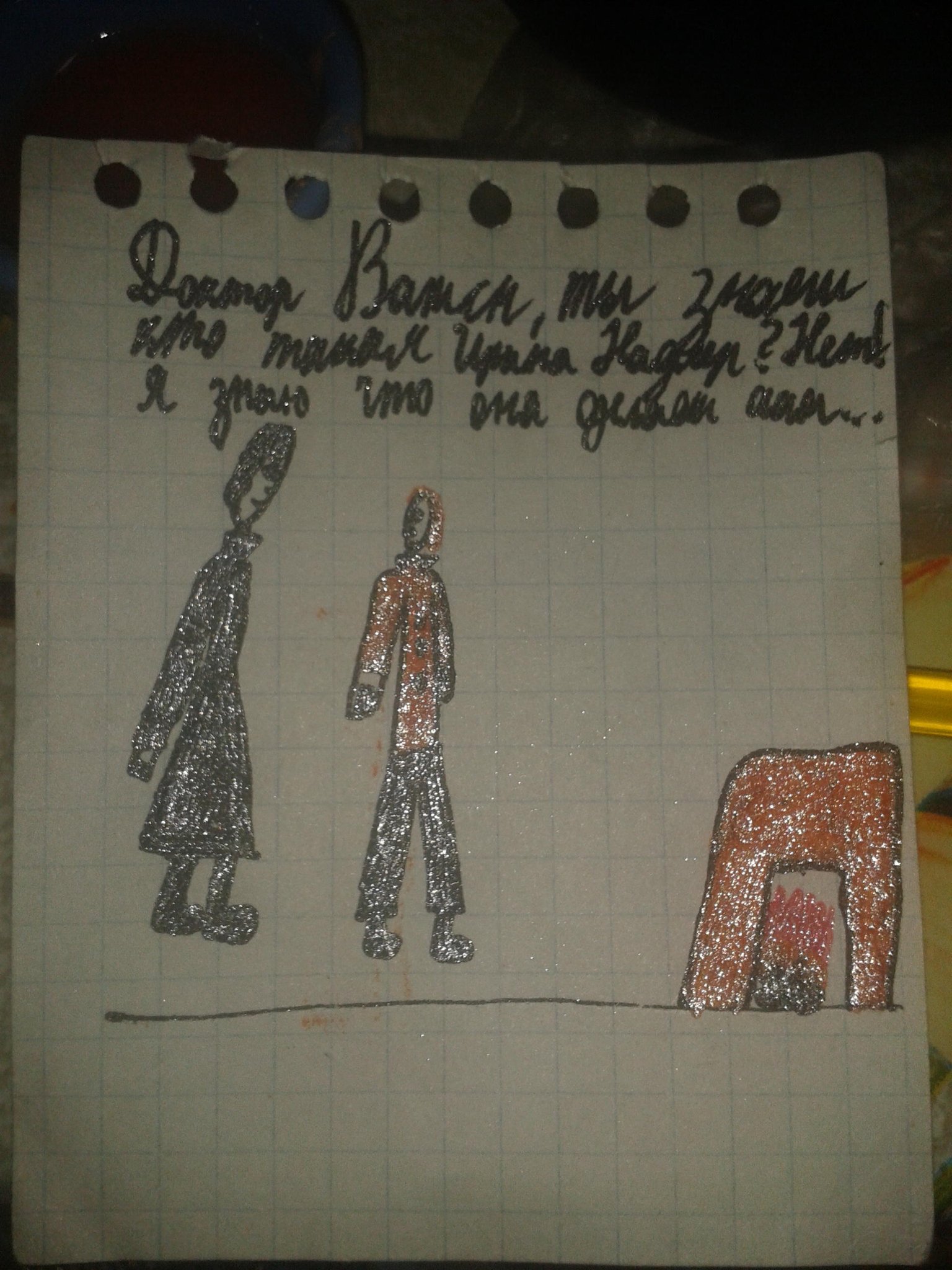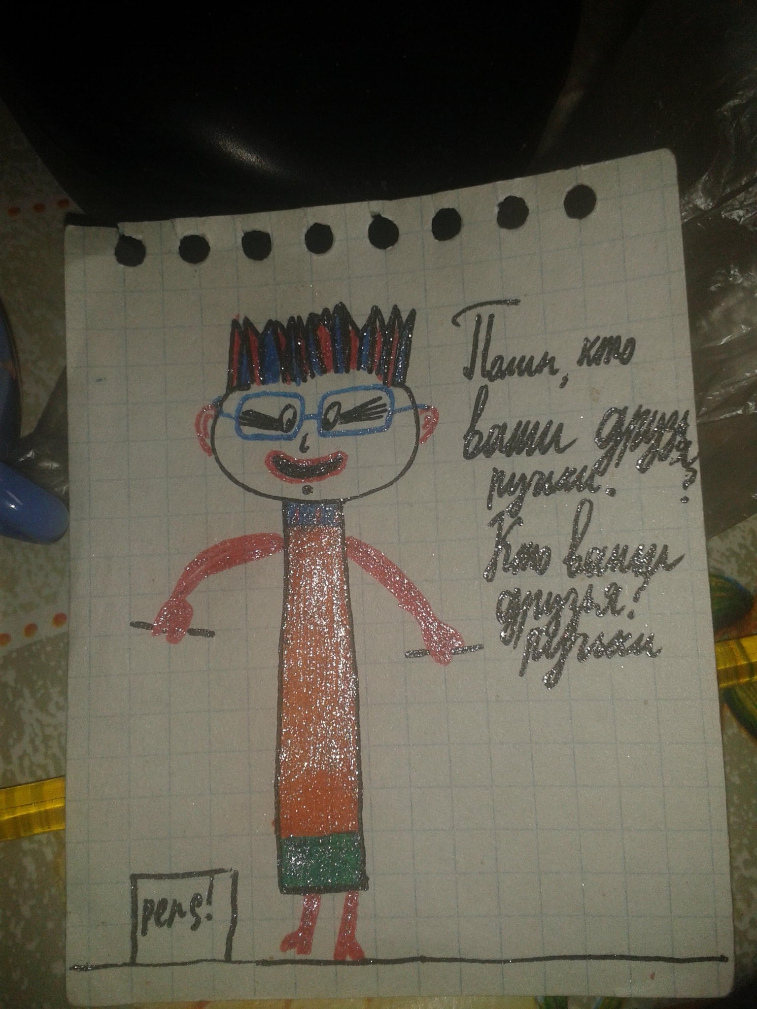 12.10.2012 в 03:34А тут сын подруги нарисовал Полин. Видимо этот образ ему тоже мозг вынес, тк говорит о ней постоянно